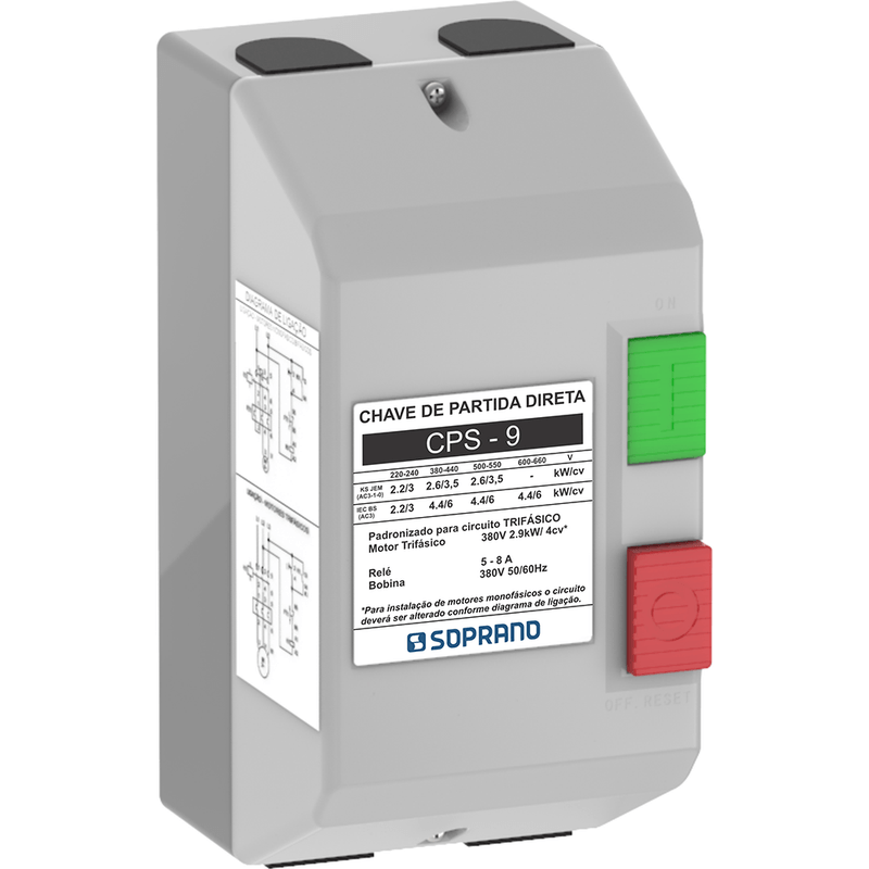 Nota 2: Todos as chaves de partida direta Soprano estão padronizadas para o acionamento de circuitos trifásicos.