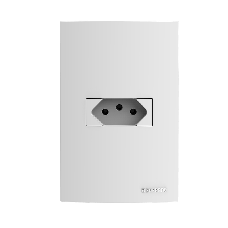 Outras Características: Conjunto 1 Tomada 20A Branco Brava! Up - Soprano Linha: Brava! Up Dimensões do produto: 79,7mm x121,7mm LxA Amperagem da Tomada: 20A Voltagem: 250V Cor/ Acabamento: Branco Garantia: 5 anos