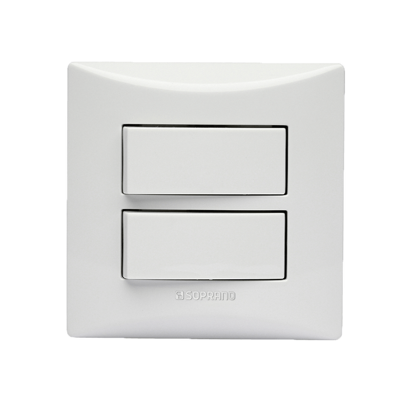Os módulos da Linha S. são compatíveis com as Linhas Brava! Up e Duale UP.Principais Características: Conjunto 2 Interruptores Simples 10A Branco Sistema S. - SopranoLinha: Sistema S.