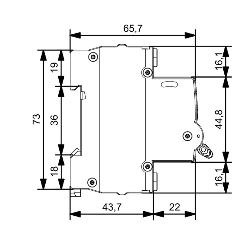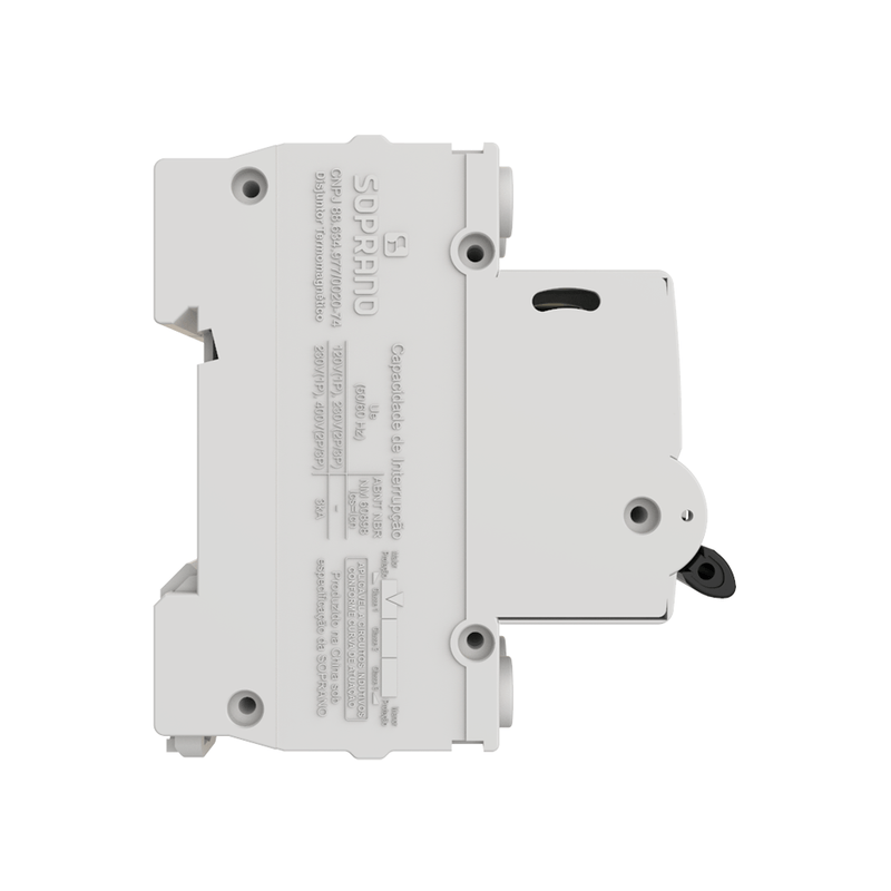 - Capacidade de Interrupção: NBR NM 60898: 230/400Vca (1P) e 400Vca (2P/3P): 3kA NBR IEC 60947-2: 120Vca (1P) e 230Vca (2P/3P): 6 KA 230Vca (1P) e 400Vca (2P/3P): 4,5kA;