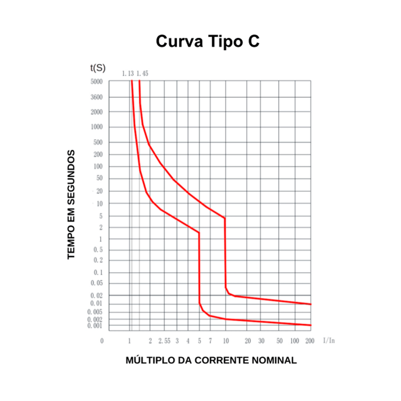 - Curva de disparo Termomagnética: Tipo C (5 a 10) x In;
