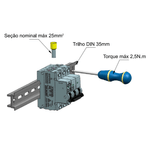 - Torque ideal de fixação dos condutores: 2,5 N.m;