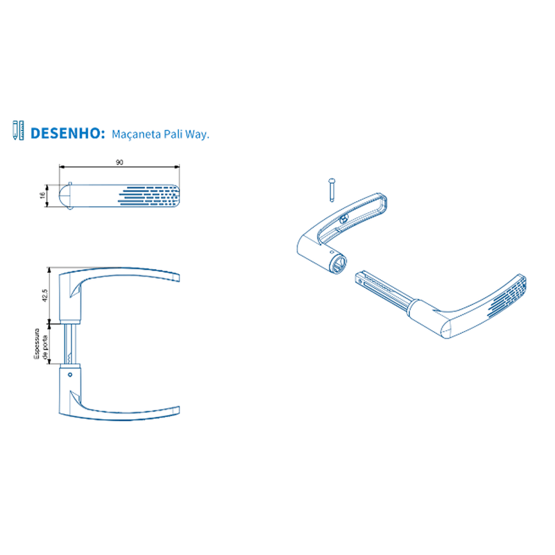 Maçaneta Reta 58mm Cromado Pali Way - Soprano