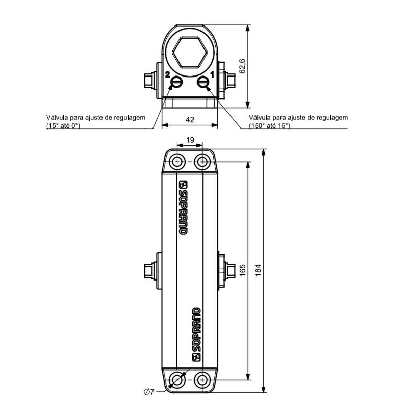 • Regulagem ajustável do braço reforçado por rosca, permitindo a modificação da mola aérea sem necessidade de remoção do produto (Diferencial Soprano);