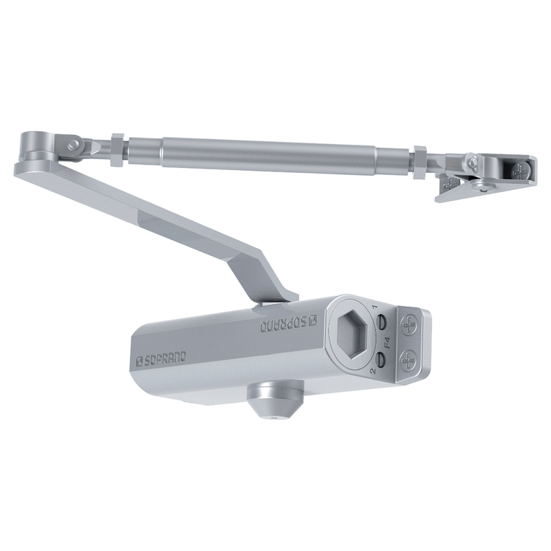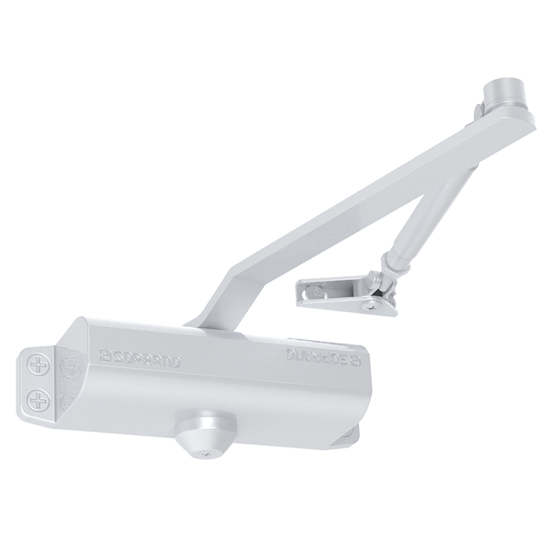 • Braço reforçado e com dupla regulagem por rosca, que permite o ajuste da mola aérea sem a necessidade de remover o produto do local de instalação (Diferencial Soprano);