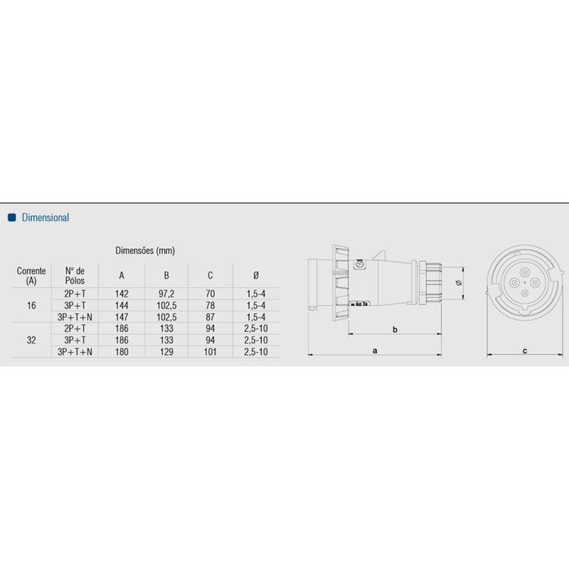 Plugue Industrial PLP-3279 32A 2P+T 415 Vca IP67 9h - Soprano