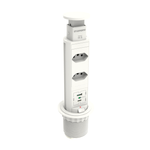 A torre de tomada embutir para móveis da Soprano é instalada em um furo passante de 60mm de diâmetro no móvel, ficando visível somente quando for utilizada.